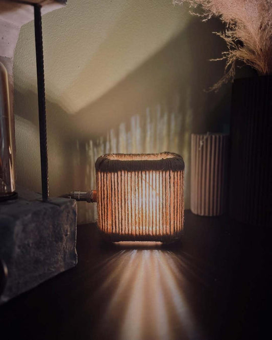 Designerska lampa industrialna miedziana z jutą w stylu boho