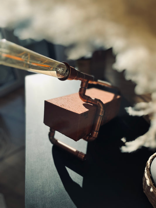 Designerska lampa industrialna miedziana z cegłą w stylu brutalizm