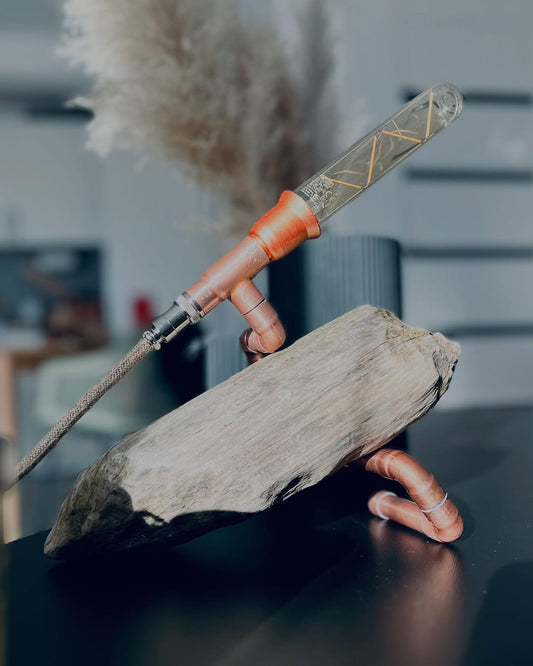 Designerska lampa industrialna miedziana z drewnem UNIKAT